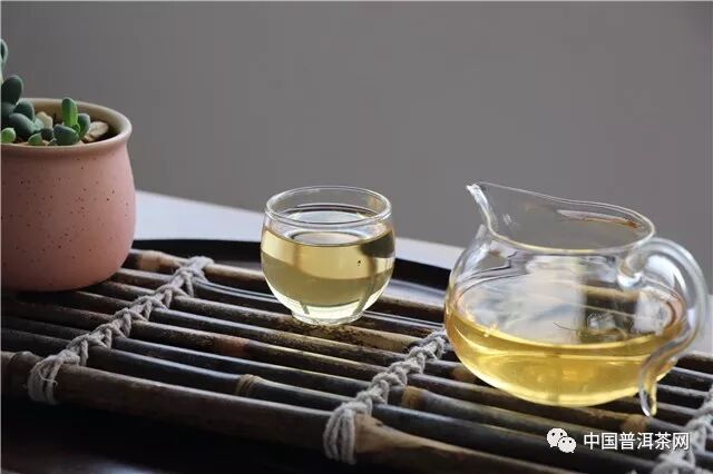 洗茶1遍,水還未完全將茶浸潤(rùn),濃郁的茶香已經(jīng)高揚(yáng)而起;出湯后,湯色淺黃,有茸毫漂浮,公道杯底掛有淡淡蜜香。